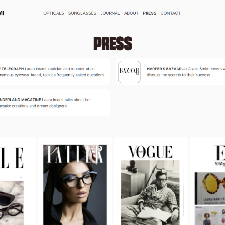 Laura Imami is the designer of the eponymous eyewear brand of glasses and sunglasses and takes inspiration from art, music, architecture, and nature itself to deliver her collection online and at a select handful of boutique opticians. Attention to detail is key for the business, with the brand founder overseeing production in workshops in Italy until the finished product meets her exacting standards and creative vision.